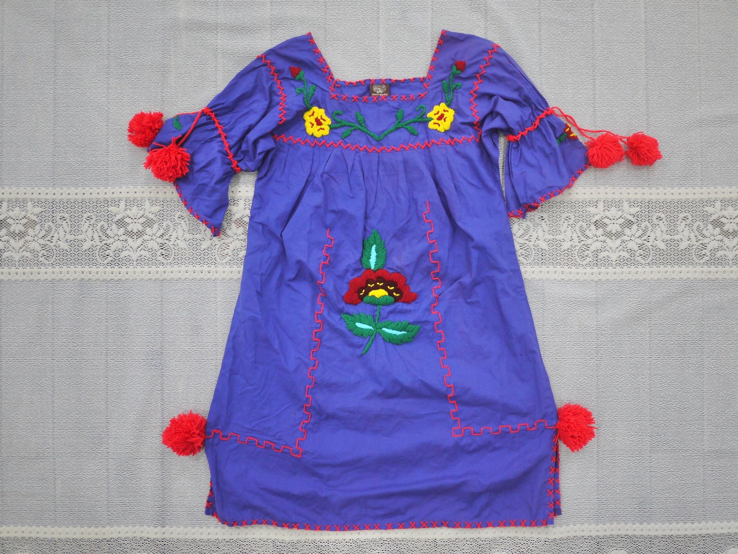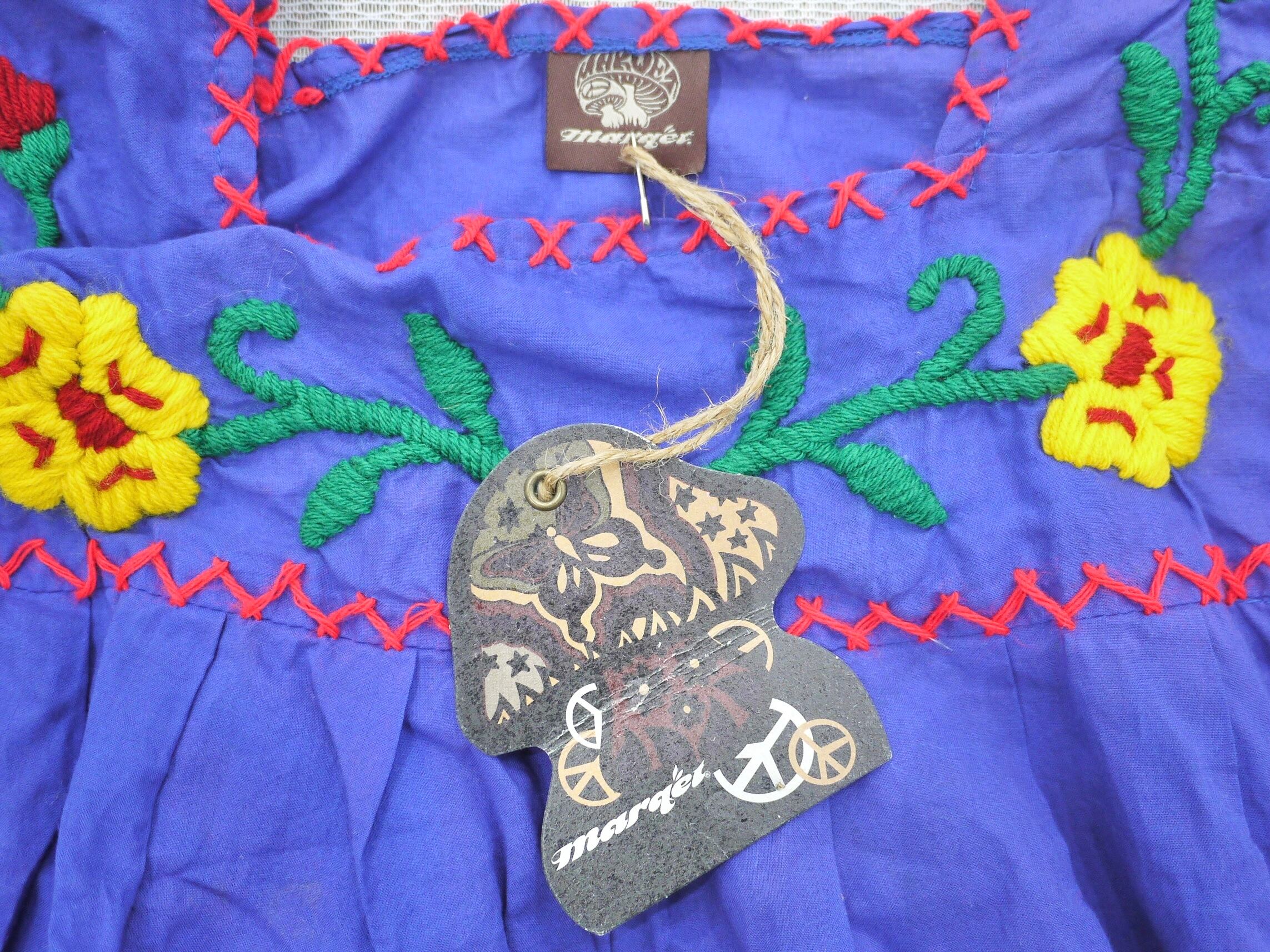 カラフルな花の刺繍に太ステッチがかわいいワンピースです。
